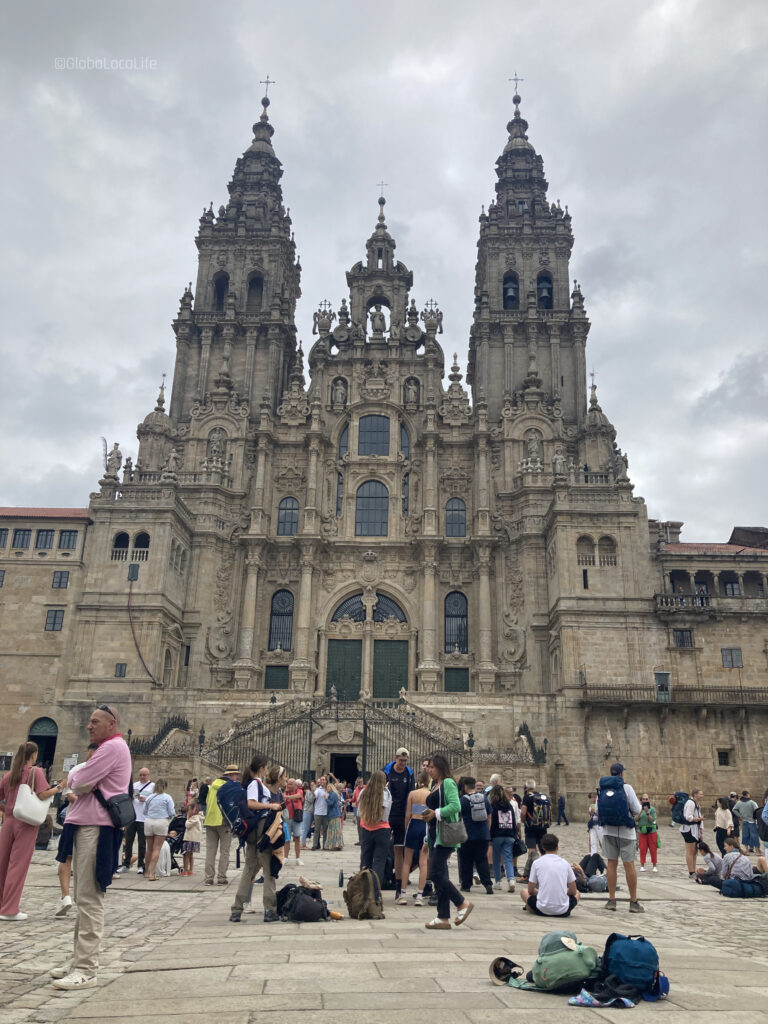 午後12時15分、出発から28日目にして、ようやくサンティアゴ・デ・コンポステーラの大聖堂に到着!長い、長い巡礼が終わりを告げる。大聖堂の姿が目に入ると、大学生の頃の記憶がフラッシュバックしたのと同時に、今回は、1カ月近く歩いてきたので、大聖堂そのものの美しさや壮大さに加え、ここまの道のりがその景色にさらなる価値を付け加えて、感動もひとしお。