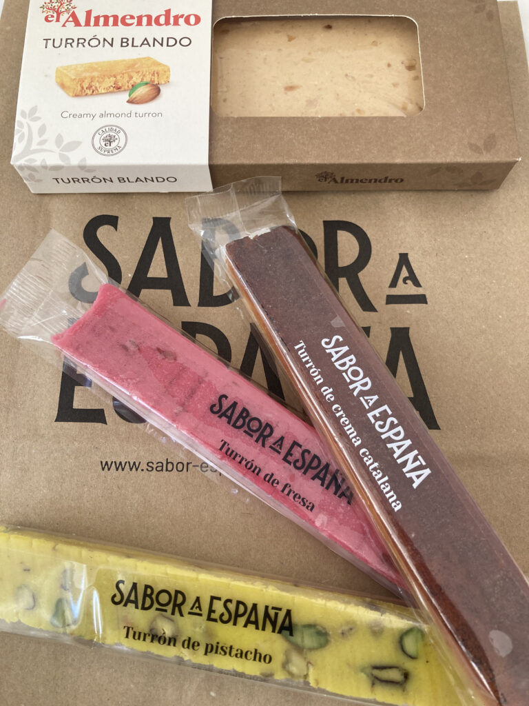 ポルトガルに住む友人には、あまり物珍しいさはないのかもしれないと思い、できるだけスペインらしいものと思い、いくつかの店を巡りトゥロン(Turrón)に。ポルトガルでどれほど知られているかは不明だが、少なくともスペイン名物であることには変わりないので、いくつかの味をセレクトして購入。