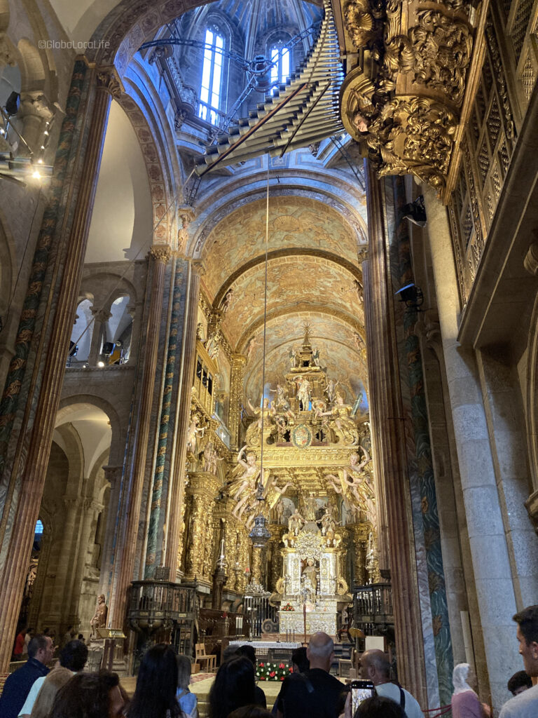 市内ツアーに参加した際におススメされたように、人が少なくなる夕方のミサの時間帯前にサンティアゴ・デ・コンポステーラ大聖堂の中へ。入場は無料。