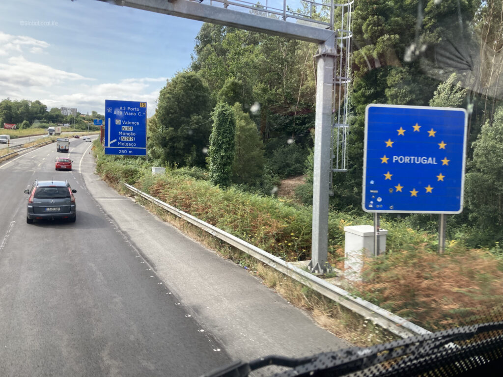 バスはあっと言う間にポルトガルに入国。巡礼者とみられる乗客はそれぞれに慌ただしく、ポルトガル入国の写真を収めようと携帯を取り出す。パスポートコントロールはなく、そのまま高速道路を進んで行く。
