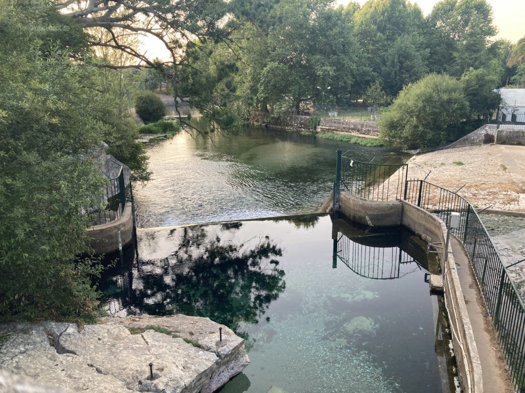 前日にナセント・ド・アルヴィエラの街に到着した際には、多くの観光客でにぎわっていた水辺も、朝はひっそりとたたずんでいる。その静けさにより、水の透明度がさらに増しているようにも見える。