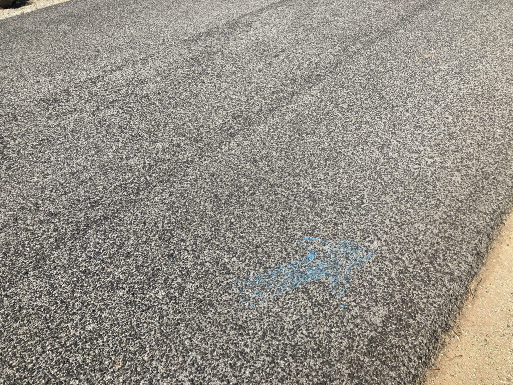 ふと、足元に目をやると矢印。サンティアゴ巡礼の矢印が黄色に対し、ファティマ巡礼は青色。探していた矢印がここにあったとは。看板や壁に描かれた矢印を探していたので、足元に注意を払っていなかった。