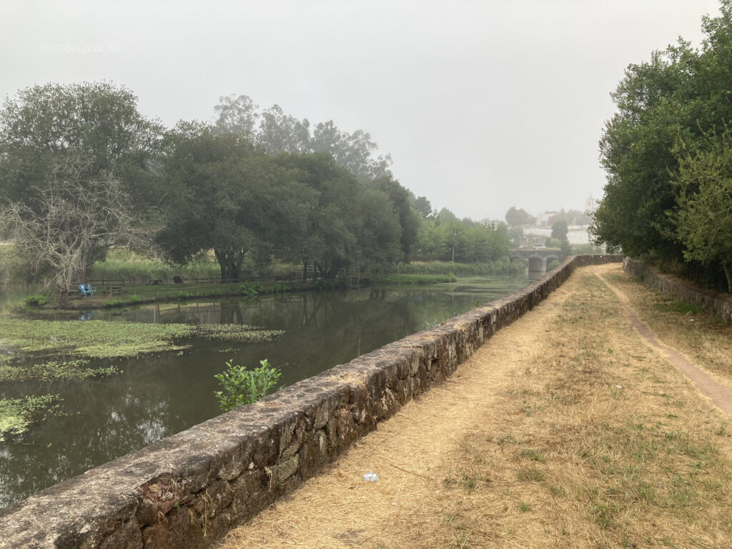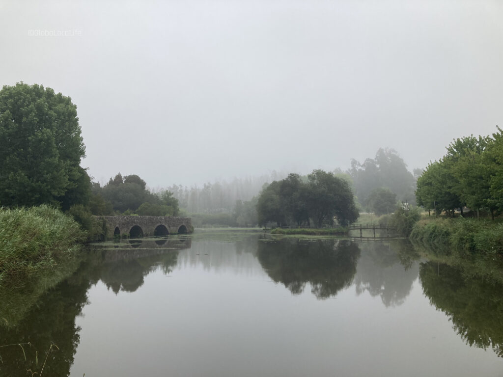 いかなる気持ちの持ちようでも、先に進まなければならない。ラマス・ド・ヴォウガ(Lamas do Vouga)に入ると、Parque da ponte medieval do marnel の中を巡礼路が続く。青空が広がっていれば印象はことなるかもしれなが、曇空のどんよりした雰囲気の中、水面に反射する橋や植物は、モネの世界観のよう。