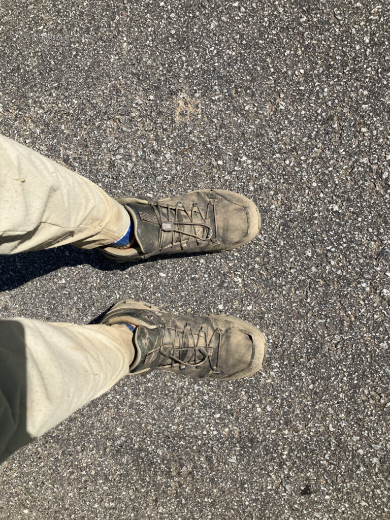 カフェで休んでいるうちに青空が広がり、巡礼路は舗装されていない山道。砂埃が激しく、トレッキングシューズが瞬く間に色が変色しいたかのように汚れてしまう。