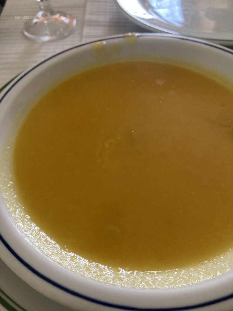 まずはスープから。どんなに照り付ける日差しで外が暑くても、熱いスープで胃を労わってあげよう。野菜の素朴な味が染み渡る一品は店の雰囲気とぴったり。
