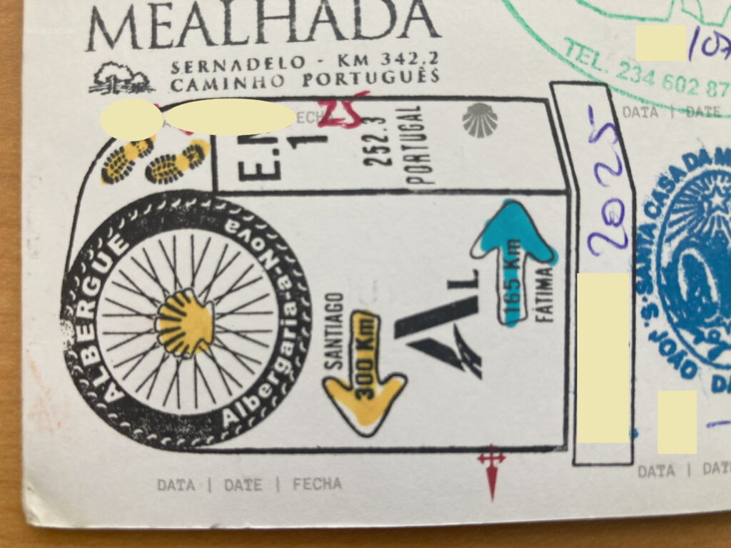 巡礼スタンプ サンティアゴまで残り300㎞の表示