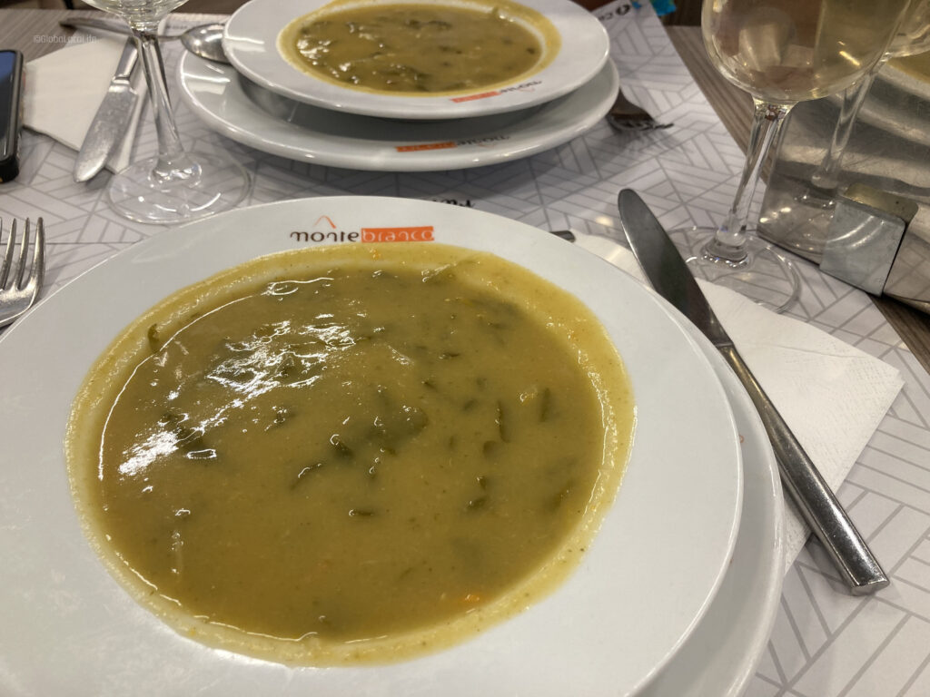 前菜としてスープ、メインはバカリャウ。ポルトガルではランチメニューでも一般的だが、ブラジルではクリスマスなど特別な時に食べるバカリャウ。