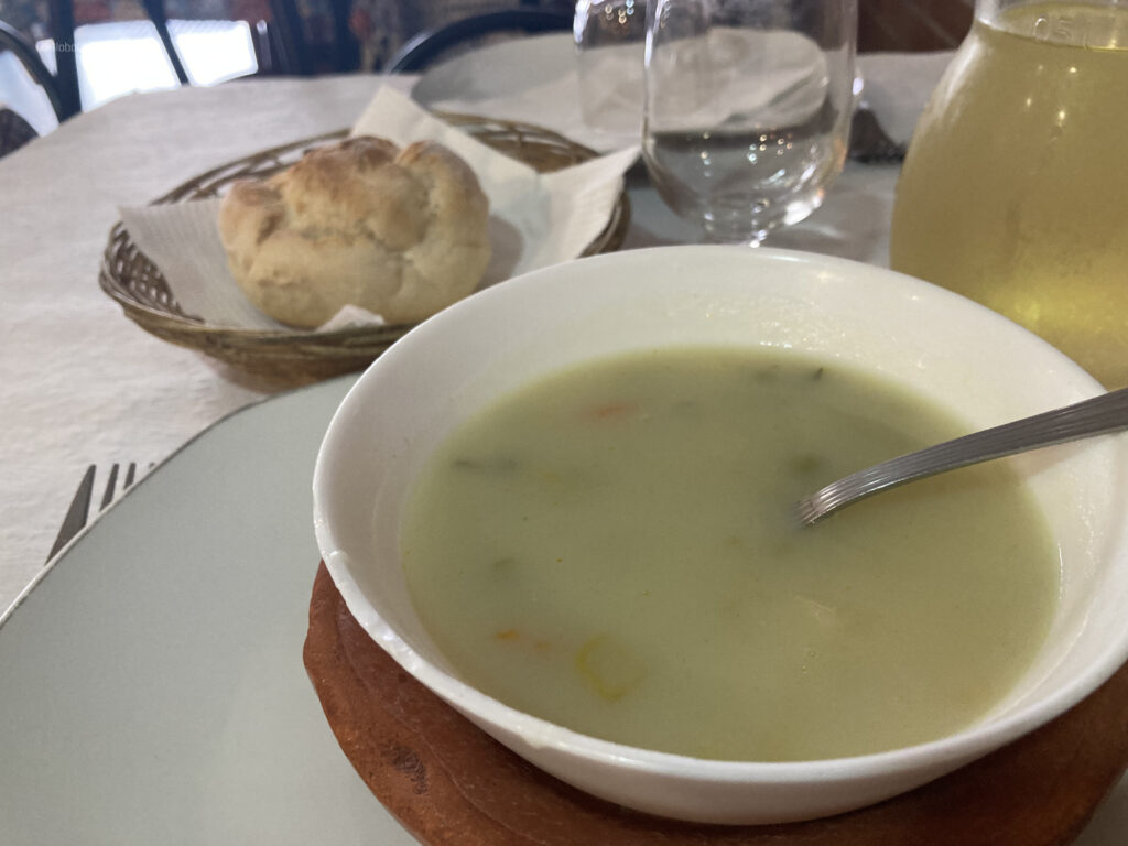 観光を切り上げて昼食は自炊か迷ったが、雰囲気のよさそうなローカルな食堂が民泊までの帰り道に現れたので、ランチを頂こう。前菜のスープからメインのイワシ、白ワイン500ml、食後のコーヒーで8ユーロ(=約1,360円)。観光地のポルトではリーズナブル。カード払いもOKで文句なし。
