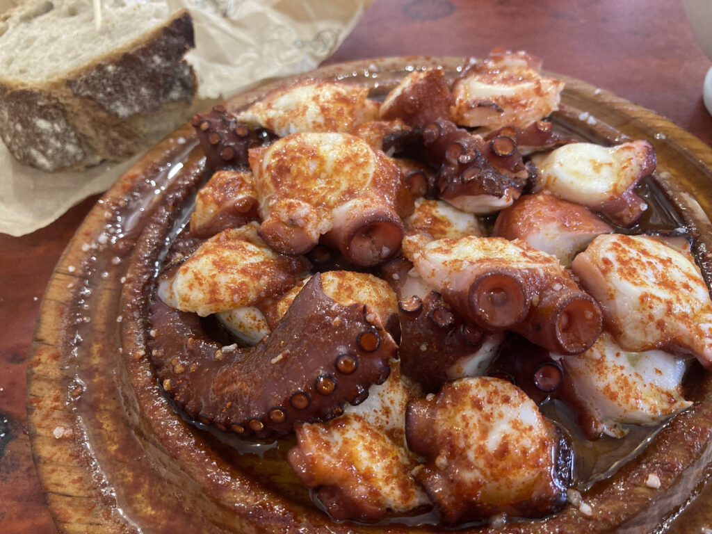 店先では、客を引き付けるように、タコが調理している様子が見られる。調理方法は基本、茹でるだけ。茹で上がったら、パプリカのスパイスでシンプルに頂くのがガルシア地方のタコ。タコが新鮮ゆえに、余計な調理や味付けは不要。