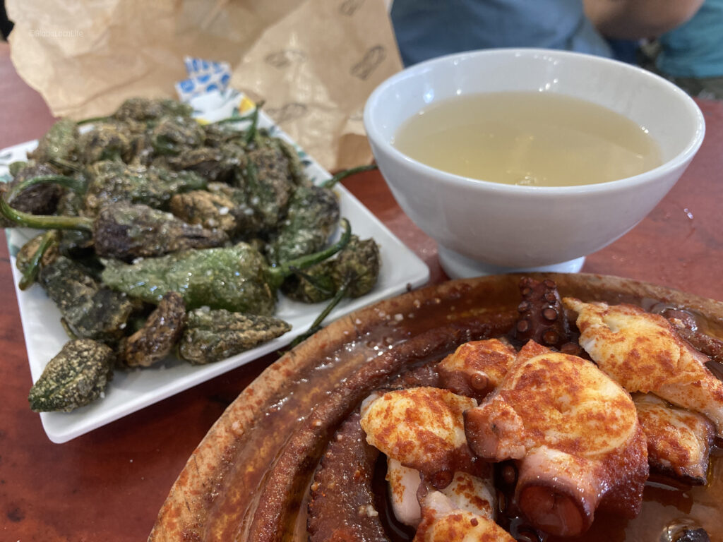 すぐ隣に座っていたスペイン人に、巡礼について尋ねられ、しばらくおしゃべり。タコ、獅子唐、ワイtンボトル1本で28.4ユーロと5,000円近い出費。前夜祭なので仕方ないと自分に言い訳して、夜はスーパーで購入したスープだけで済ませよう。
