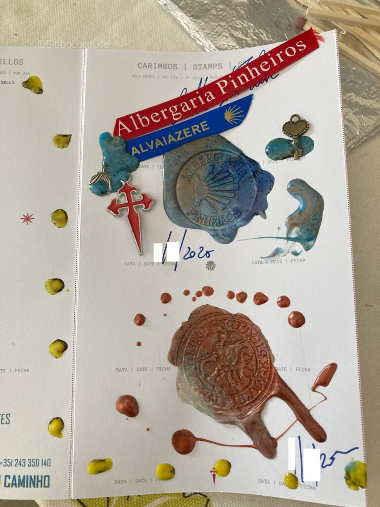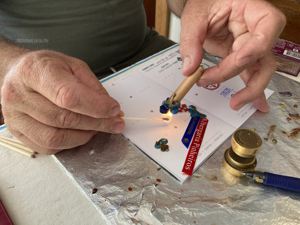 このアルヴァイアゼレの宿のスタンプは、この巡礼旅で一番のアート作品。受付のカルロスさんは、マッチに火をつけ始め、最初はクレデンシャルを焼かれるのかと思い、思わず制止しそうになった。
