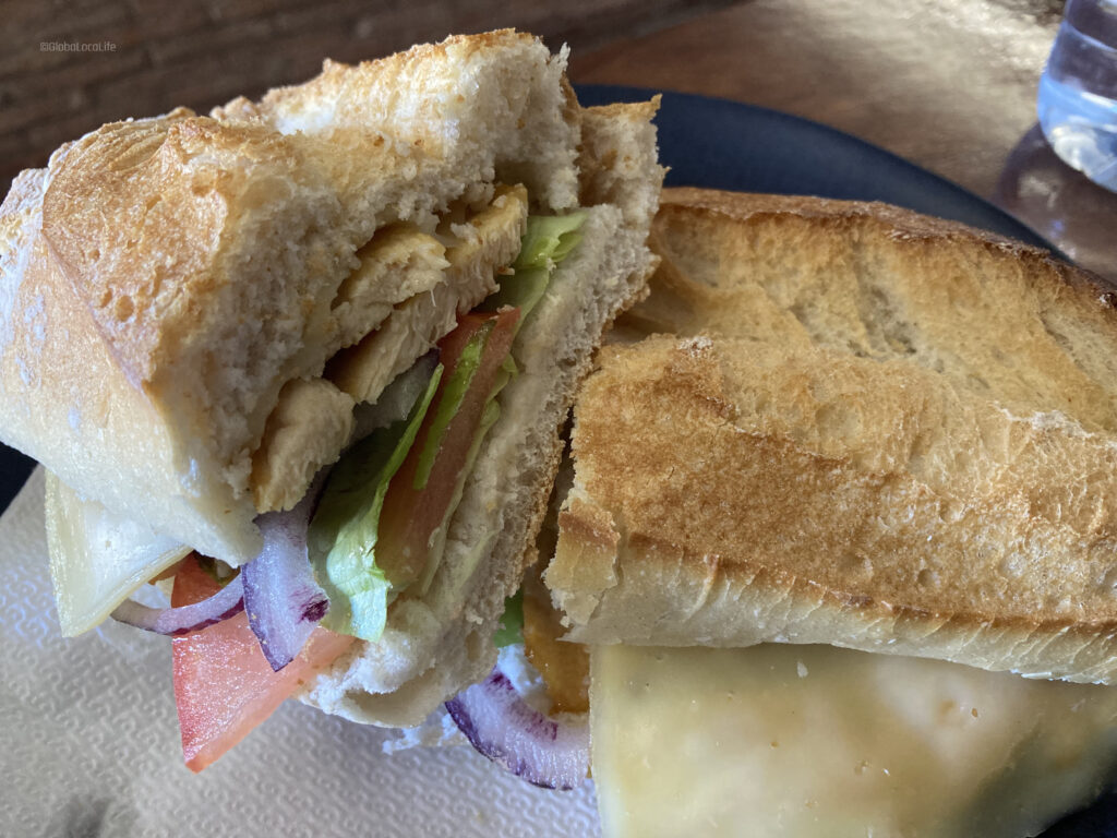 スペインでの巡礼旅の初めての食事だったので、パーっと値段も気にせずに食べたいものを食べようとも考えたが、胃袋がそれほどしっかりとした食事を求めていなかったので、簡単にチキンサンドウィッチ。これは6ユーロ(=約1,050円)とリーズナブル。