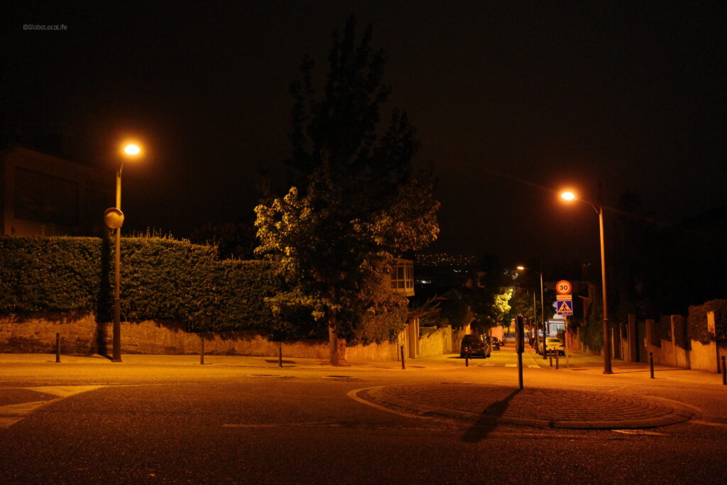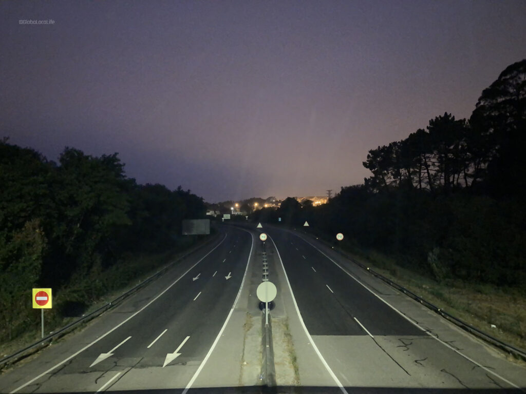 薄暗い不気味な雰囲気の中でのスタートとなってしまったが、幸い街灯のある村の中を進んでいくので、少し不安が解消された。唯一、歩道橋か山道かの選択を迫られる場面があったが、巡礼地図アプリでは両方の道を示しているので、暗黒に見える山道は避けて、一般道に架かる歩道橋を進む。