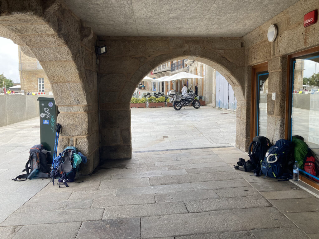 フランス人巡礼者に荷物の見張りをお願いする。スペイン語・英語が通じなかったので、つたないフランス語で説明。なんとか通じた模様。