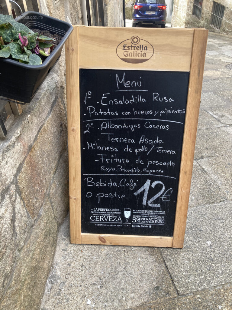 歩いていると、ランチメニューの看板がレストランの前に立っている。12ユーロ!スペインでこの値段はかなり破格。一瞬、ポルトガルに逆戻りしたかと錯覚したくらい。