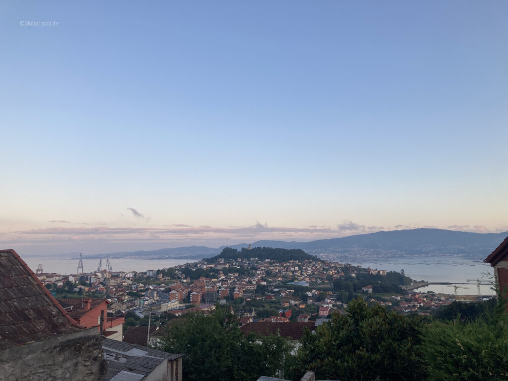 急な勾配の上り坂を歩んできたご褒美と言わんばかりに、朝焼けに照らされるヴィーゴの街並みが一望できる。心臓破りのような道を駆け抜けてきた甲斐があった。ふと、いつものように巡礼の黄色い矢印に目をやると、サンティアゴ・デ・コンポステーラまでの残りの距離の表示が91.38km と100㎞ を切って、残りの距離が2桁に突入。