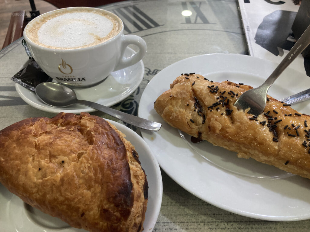 道路を挟んで2軒のパン屋が軒を連ねていたが、1軒はテイクアウト専用のようだったので、もう一方の店舗へ。ツナのエンパナーダでがっつり空腹を満たし、Cama de Chocolate と言われる菓子パンとカプチィーノで4時間近く歩いてきた体に甘味のご褒美をあげる。