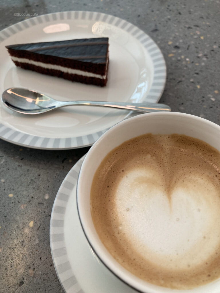 朝ごはんというのに、カフェラテを注文したついでに、コーヒーのお供としてチョコレートケーキに手が伸びてしまった。