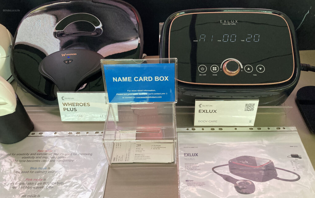 今や世界を圧巻するKビューティー。こじんまりとしたシンガポール航空のシルバークリスラウンジ内の一角にも美容グッズのPRコーナーが設けられている。
