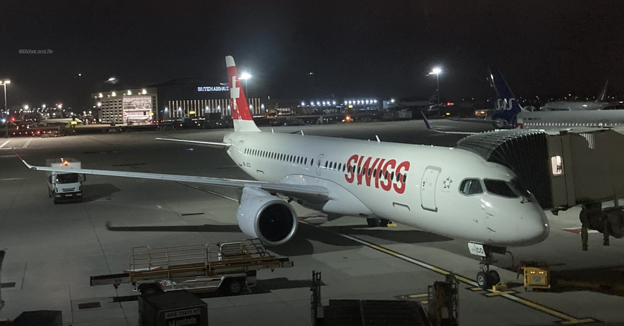 午前5時40分、搭乗開始。グループ1&2に分けられた優先搭乗から始まる。さすがスイスの航空会社。規律正しく、グループ分けの搭乗がスムーズに進んでいく。おかげで機内に向かうまでノーストレス。