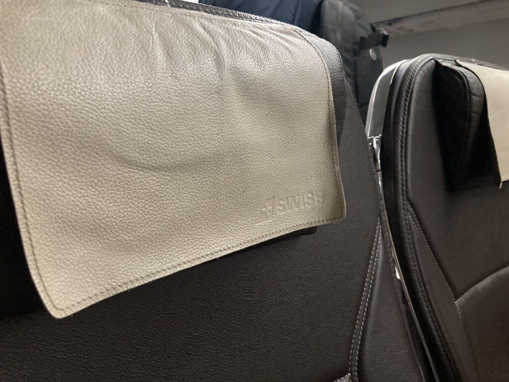 スイスインターナショナルエアラインズの座席は、レザーのヘッドカバーが高級感を演出している。