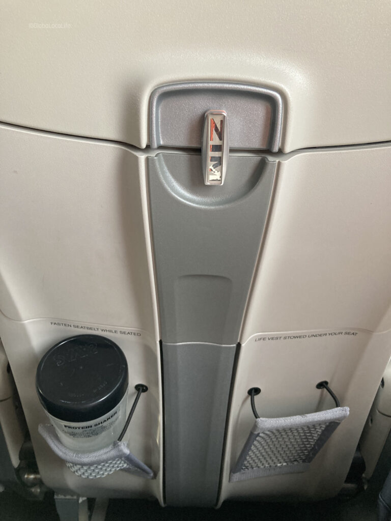 無駄を削るという意味では、座席前のシートポケットも、水筒などが2本入れられるようにデザインされ、無駄がそぎ落とされている。