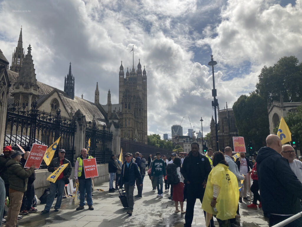 ロンドンの観光名所の1つでもあるビックベンの前を通り過ぎると、政府機関の職員で構成される労働組合・PCS(Public and Commercial Services Union)がデモ活動を展開していた。