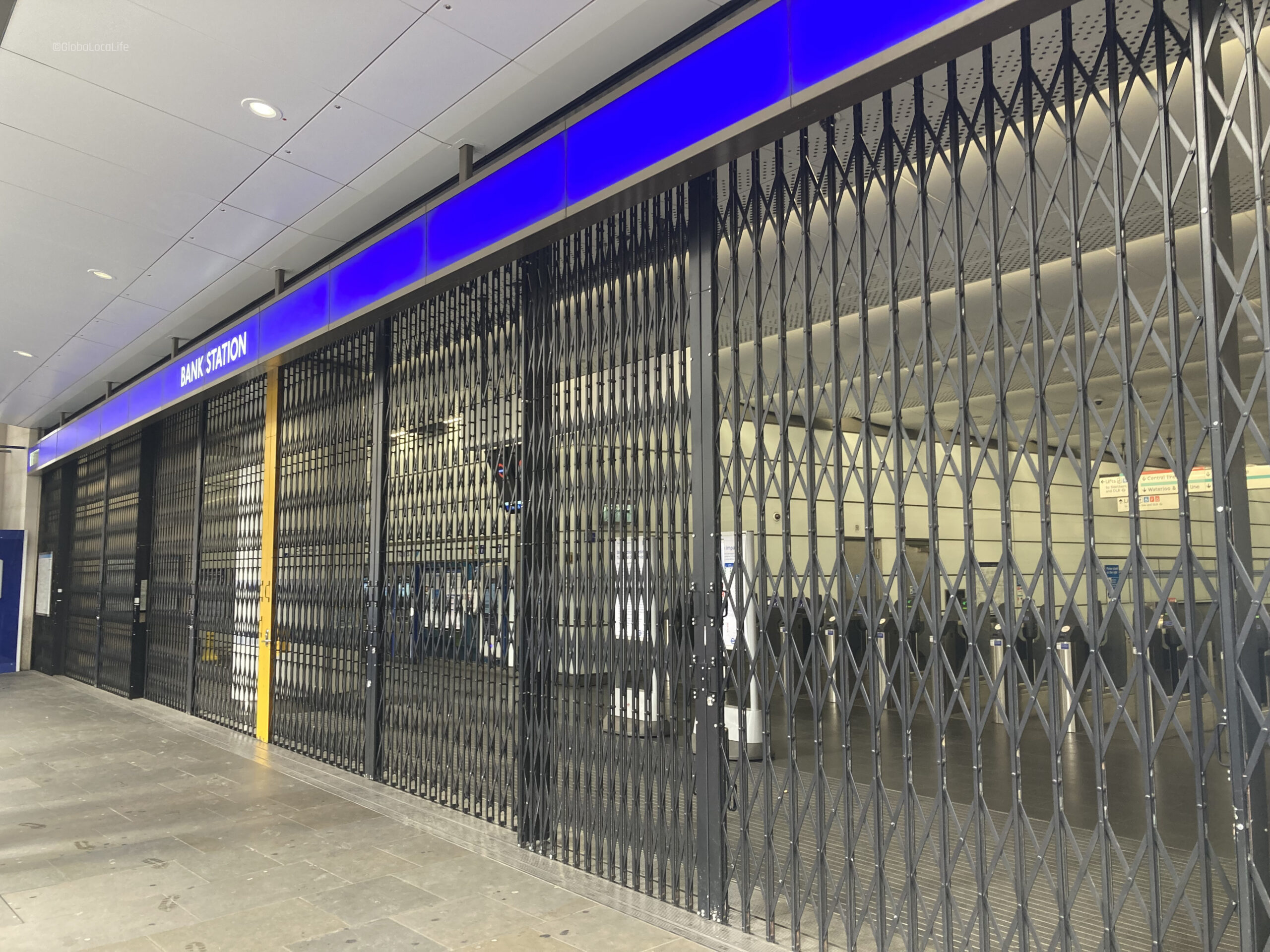 地下鉄への入り口が封鎖された状態