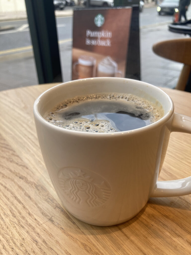 足元の2026年2月時点では円安がさらに進行しているので、750円近い値段になりそうな勢い。イギリス旅の出だしの1杯のコーヒーから物価高を実感させられる。