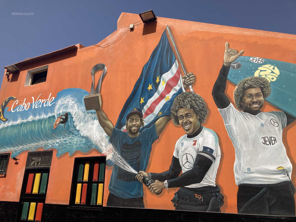 スポーツとしてのカーボベルデ人選手のレベルも高いようで、これまでにカイトサーフィンの世界チャンピオンも輩出しており、その1人、ミツ・モンテイロは島のレジェンド。その功績を称えるように、島の中心部の建物には壁画が描かれている。