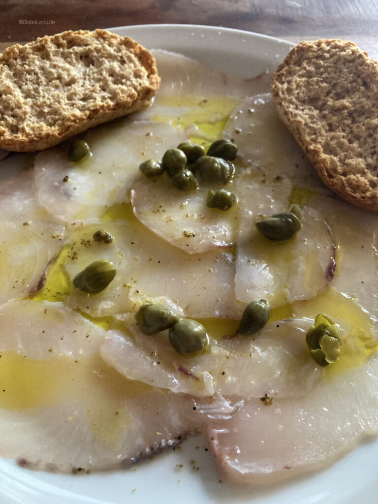 いずれにせよ、カーボベルデで鮮魚を購入して料理するという目的は果たせた。しかし、一度では食べ切れず、民泊のオーナーにお裾分け。すると、後日、お返しにと、同じく桟橋で購入した魚を冷凍保存して解凍し、カルパッチョに仕上げた1品をご馳走になった。
