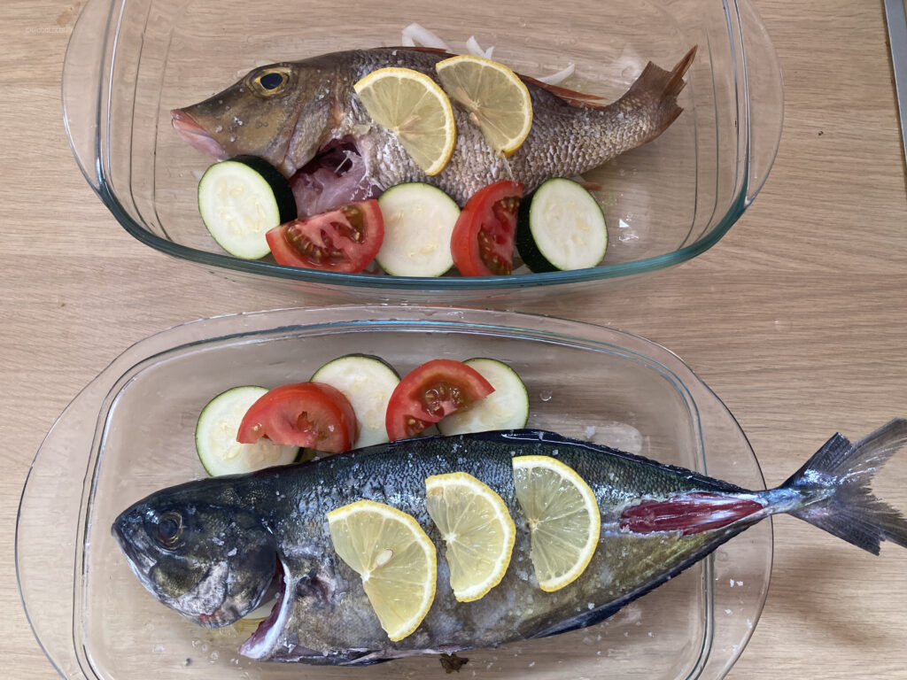 魚には精通していないので、正直、どんな種類なのか不明だったが、「Bonito Xeréu Azul」と「Bica da Rocha」と思しき2尾を購入。丁度2尾で1キロの重さで 3.5 ユーロ。(=約600円) 暮らすように旅するカーボベルデ#4 カーボベルデ・サル島の物価編で紹介したように、作物が育たないサル島では、野菜果物が輸入に頼るので割高な一方、魚は破格の値段と言っても過言ではない。