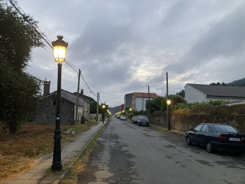 巡礼旅の最終日というのに、空模様は歓迎ムードとはいかず、どんより曇り空。そのせいか、明け方は町がより一層暗い雰囲気を醸し出す。歩き出すと、黒い猫が行く手に現れる。前日の野生のイノシシよりはマシだが、朝から黒い猫とは、なにか不吉なことが起きる予兆なのだろうか。無事にサンティアゴ・デ・コンポステーラまでたどり着けるように祈るのみ。