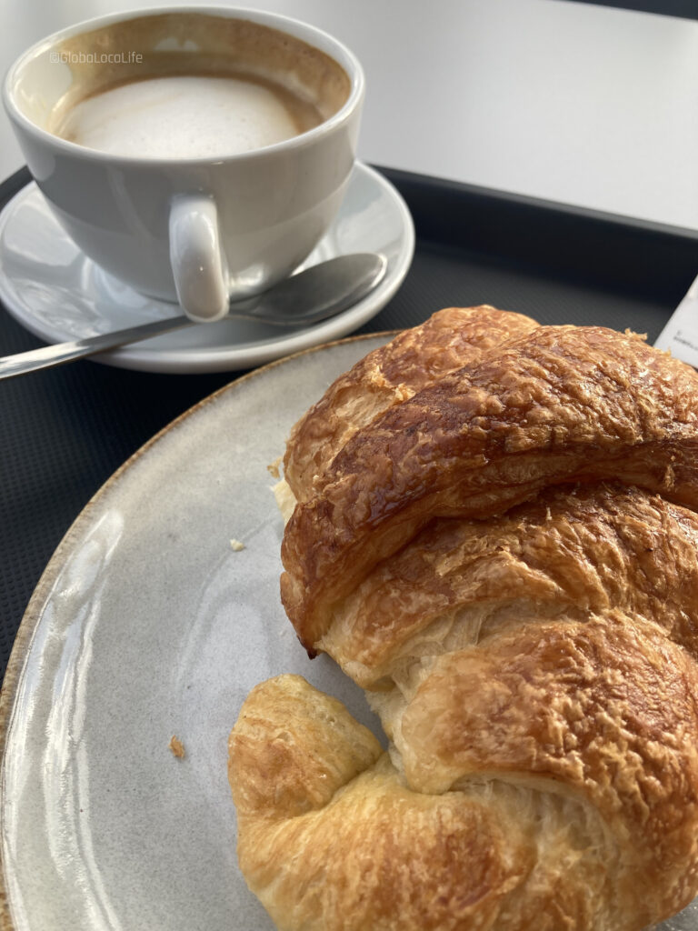 チョコレート系のパンはなく、クロワッサンとコーヒー。4.3ユーロ(=約730円)とちょっぴり観光地価格。サンティアゴ・デ・コンポステーラの近くまで到達すると、カフェの客の大半は巡礼者となってしまうので、コーヒーを飲んだらさっさとその場から去りたくなる。
