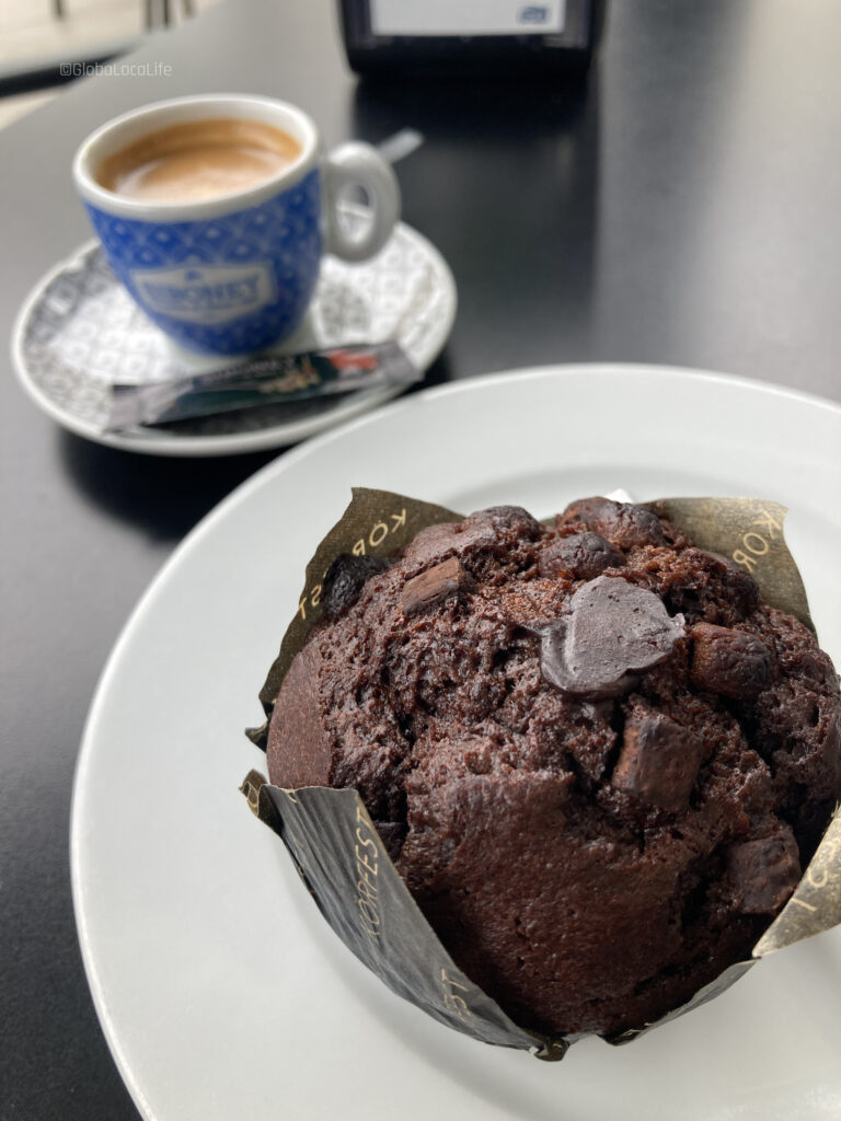 最後のカフェ休憩と称して、チョコレートマフィンとコルタードを頂く。