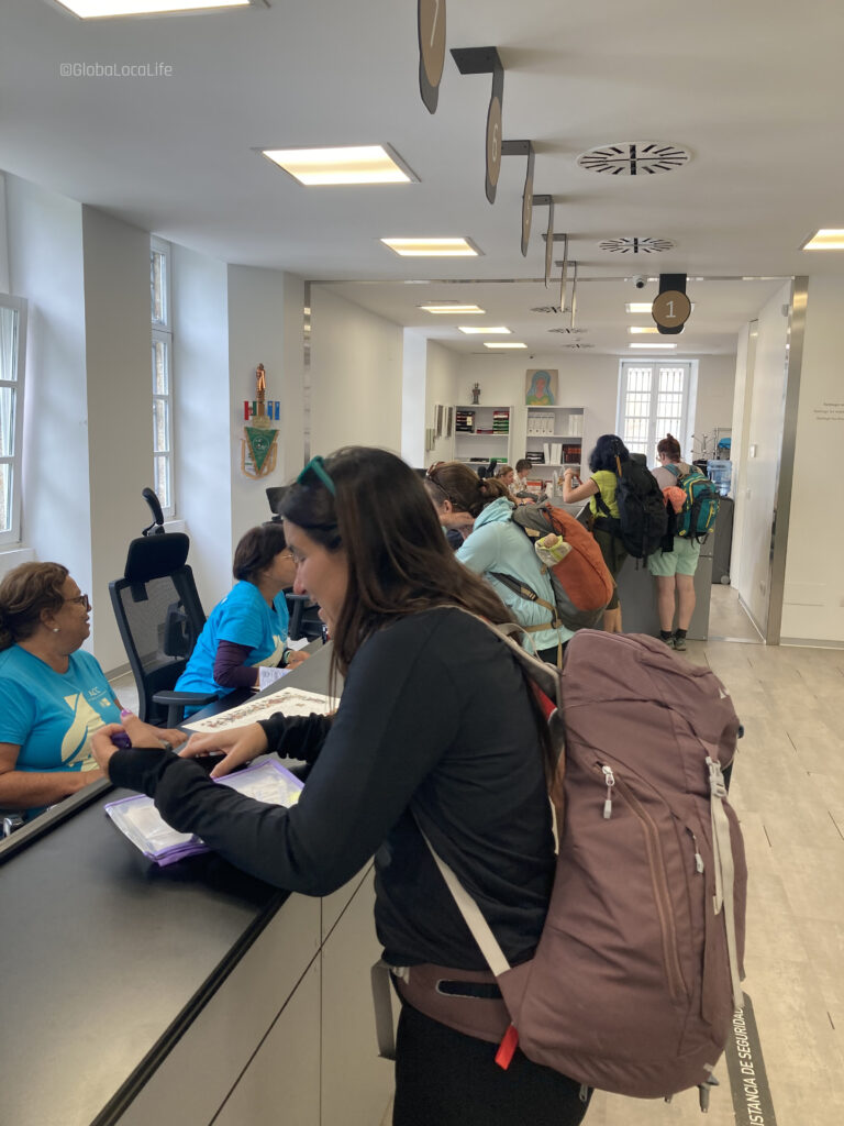 事務所内には、同じように巡礼をしていた人がこれほどもいたのかという数の巡礼者。ポルトガルのルートはマイナーでも、スペイン各地や人気のフランスのルートから巡礼者が到着してくると考えれば当然か。