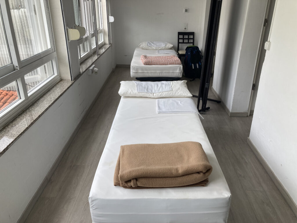 チェクインの時間が近づき、最後の巡礼宿に。巡礼宿の多くは連泊を認めていないが、このサンティアゴ・デ・コンポステーラの巡礼宿は最終目的地ということもあり、連泊が可能。よって翌日を休息日とするため、2連泊。サンティアゴ・デ・コンポステーラには巡礼宿の選択肢は他の場所と比較すると多い中、中心地からの距離、清潔さを重視して Mundoalbergue を選択。事前にワッツアップ経由で予約の手続きを済ませておいた。