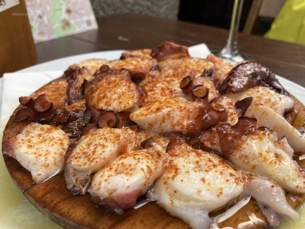 ワインで乾杯しながら、ガルシア地方の名物・タコ料理を一緒に味わう。スペインのアルメリア地方在住のペドロにとって、ガルシアのタコ料理は特別なようで、一緒に舌鼓を打ちながら、ワインが進む。