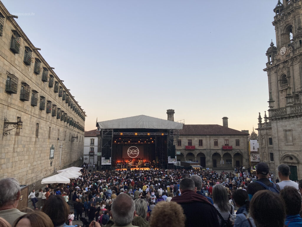 聖ヤコブの祝日を控えたサンティアゴ・デ・コンポステーラでは、コンサートが連日開催されており、この日は「SES」という歌手が登場。大聖堂の裏にある広場で、音楽が響く。