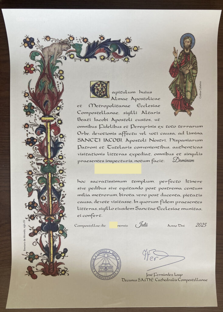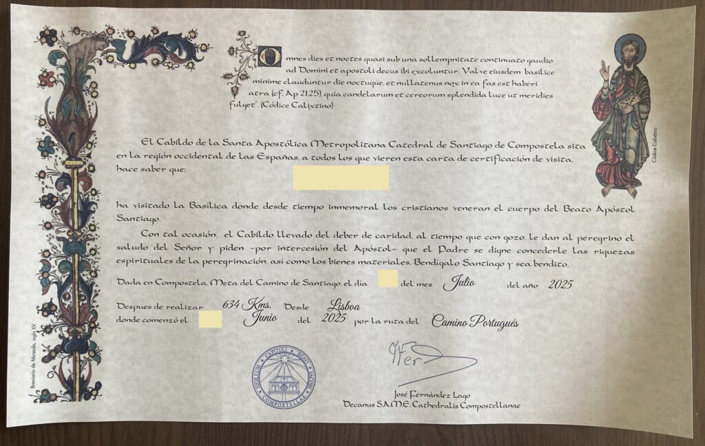 巡礼手帳(クレデンシャル)に最後のスタンプを押してもらい、無事に28日間、634km に及ぶ巡礼が終了。特別な才能や能力がなくても、毎日コツコツと取り組めば、目標を達成できるという成功体験をまた1つ積むことができたのも、巡礼旅の大きな収穫。