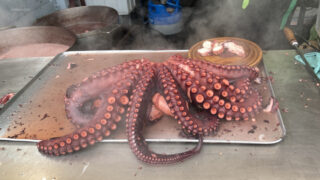 サンティアゴ巡礼は、いよいよゴールまで50km ほどを残すのみとなった27日目、 ブリアージョス ~ イリア フラヴィアまでの24.4㎞の道のり。巡礼者の大群を回避すべく、推奨ルートから少し先の町で滞在する作戦は奏功し、巡礼宿のドミトリーを一人で独占。また、ガルシア地方の名物料理タコで前夜祭と称してワインで祝う。