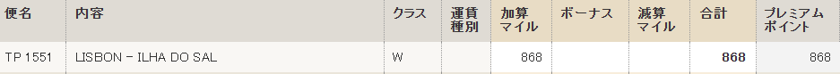 リスボンからサル島までのフライト、エコノミークラスWで868マイルを獲得。夢のファーストクラスまでの道のりは続く。